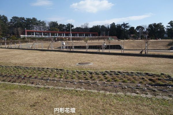30分程で服部緑地に入る。日本民家集落博物館の横を通って、円形花壇の南側の梅林では紅白の梅が咲き始めている。 日本庭園の池の前でお昼休憩をとる。 |