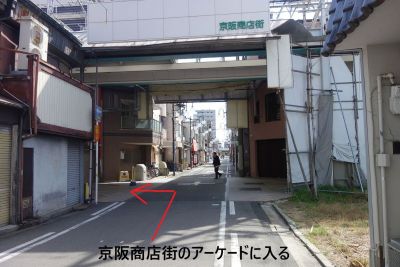次の角を左折し京阪商店街のアーケードに入る。 |