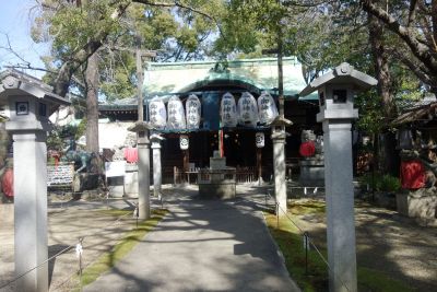 車道に出て5分程で左に入り、八雲小学校を過ぎ高速道路下を通って正迎寺で右折、公園を回り込み淀川の土手下の八坂瓊(やさかこ)神社に寄る。土手に上って外環状線を右折し、大日交差点の地下鉄大日駅に着く。 |