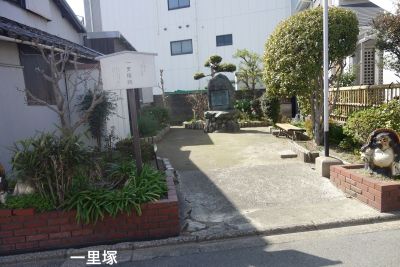 寺を出て北に進み大道りを渡ってまもなく一里塚がある。 |