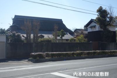 三叉路を西に渡り南西の小道を進んだ内本町の旧家群に寄り道する。旧家を見て大道りに出て左側には大きなお屋敷が数軒残っている。 |